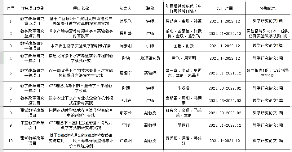 教学研究项目的通知》,经老师自主申报、专家匿名评审、学院综合评价,学院拟推荐以下十项教研项目为2021年禁漫天堂