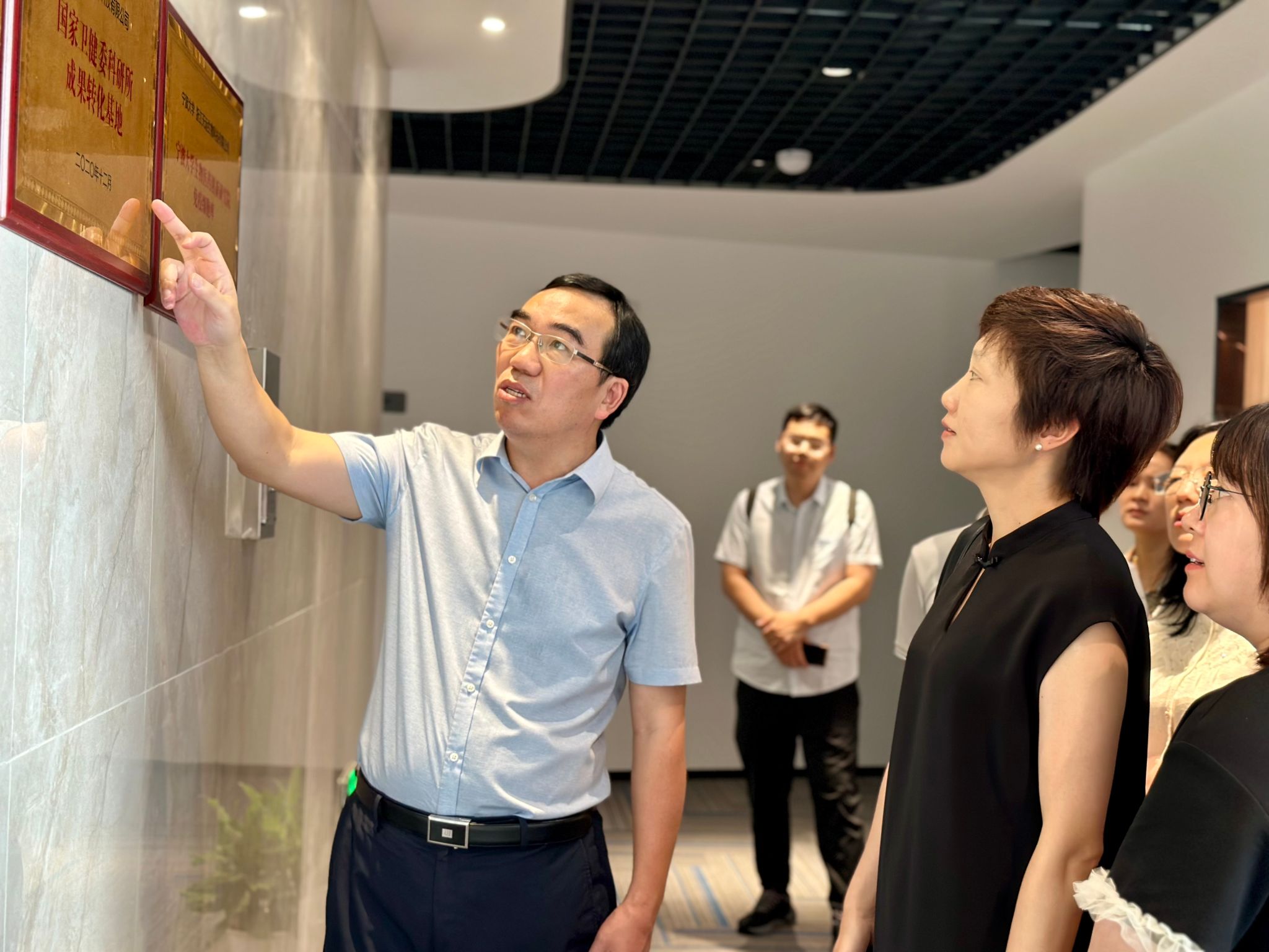 学院师生在公司董事长黄必胜的陪同下,参观了公司展厅,详细了解了公司在生物医疗领域的最新进展与成果以及公司的运营模式、发展战略和未来规划等情况。