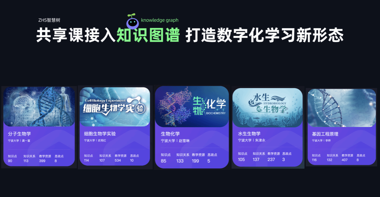 于2023年9月就率先与智慧树平台积极探索以知识图谱Ai课程为基础的数字化、智能化和个性化的新形态教学转型,目前已建成“分子生物学”、“细胞生物学”、“生物化学”、“水生生物学”和“基因工程原理”五门人工智能赋能的知识图谱Ai课程,为推进教育数字化转型进程和人才培养质量提供了全新的、顶层的、切实可行的实践路径。