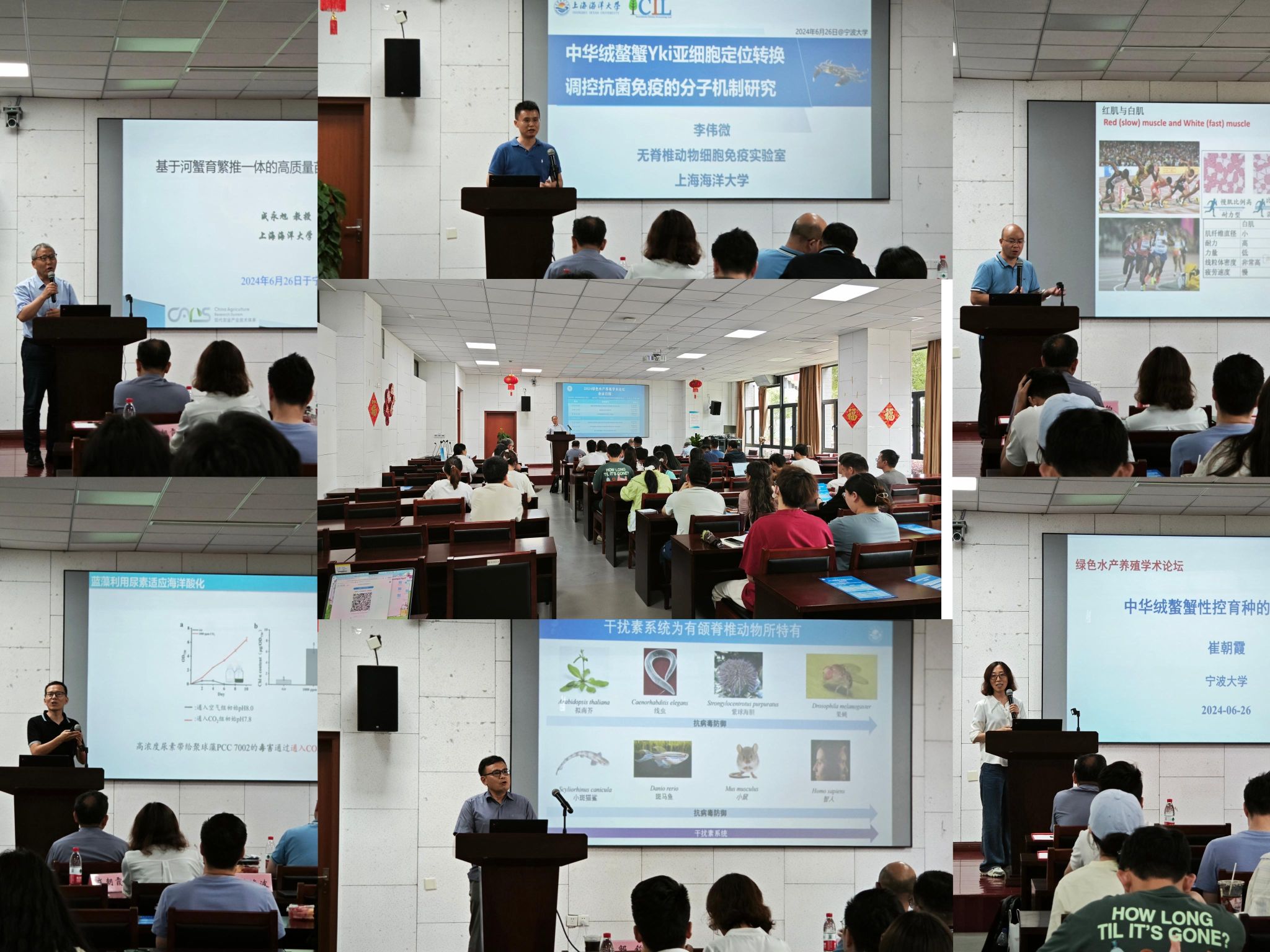 学术领军姜海波教授作了“尿素排放与海洋酸化耦合作用下近岸海域浮游植物的生理生态学响应”、上海海洋大学国家优青获得者李伟微教授作了“中华绒螯蟹Yki亚细胞定位转换调控抗菌免疫的分子机制研究”、上海海洋大学国家产业体系岗位科学家成永旭教授作了“基于河蟹育繁推一体的高质量苗种生产技术”等6场专题报告。本次论坛由禁漫天堂