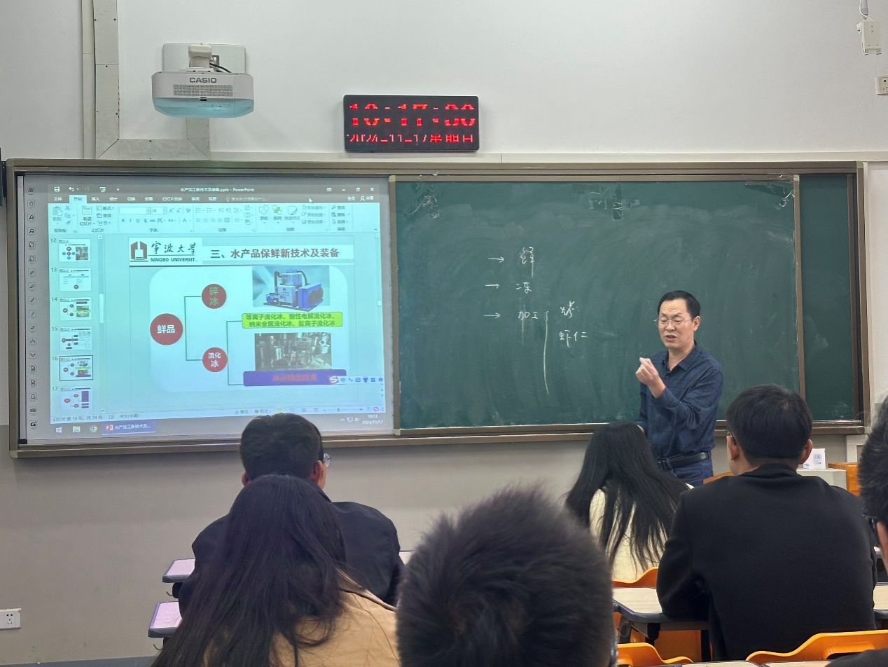的娄永江教授将新质生产力下的水产品保鲜加工技术带入课堂,对水产品保鲜加工的原理和实际应用做出深入浅出的讲解,专业且不乏通俗地使学员们感受到自己所从事的水产相关产业的深远意义。