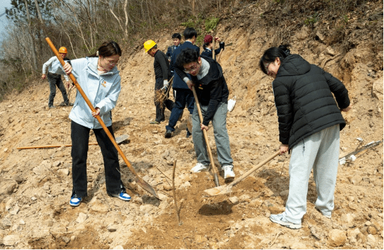 植树现场,来自各单位的党员志愿者展现出高效的团队协作精神。挥锹铲土、扶苗培土、提水浇灌等工序衔接有序,经过两个多小时的劳动,百余株新栽树苗迎风挺立,为早春的山野增添盎然生机。活动不仅践行了生态文明理念,更通过政校企多方联动搭建起绿色发展合作平台。