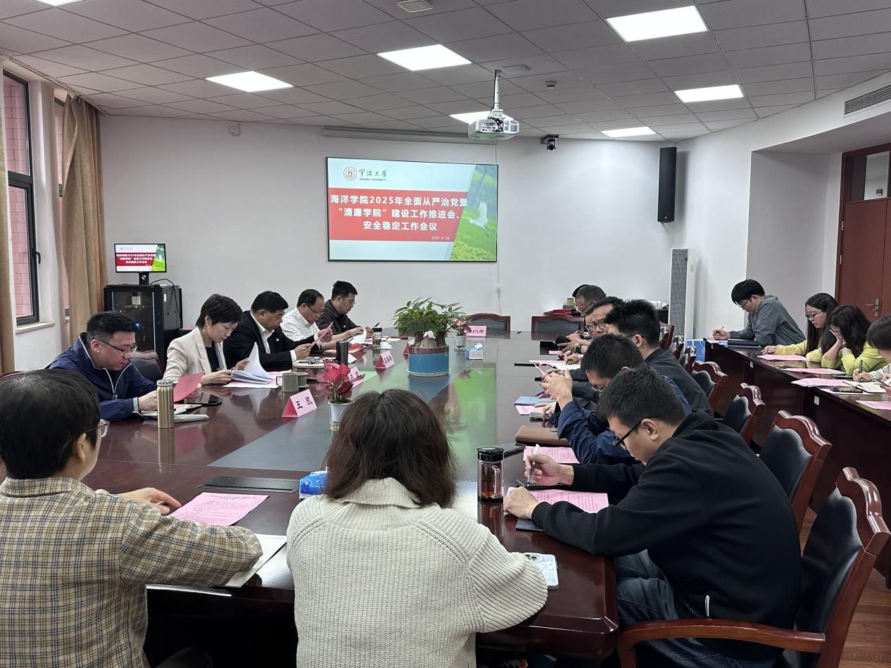 2025年全面从严治党工作暨清廉宁大建设推进会、2025年安全稳定工作会议精神。学院党政领导、教工党支部书记、纪委委员、学术团队负责人、各内设机构负责人等参加会议,特聘院长、党委委员王春琳主持会议