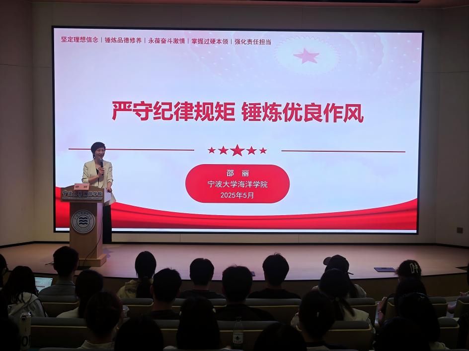 于中试基地报告厅成功举办“严守纪律规矩,锤炼优良作风”专题党课。学院党委书记邵丽主讲,各学生党支部书记、分党校预备党员及发展对象参加。