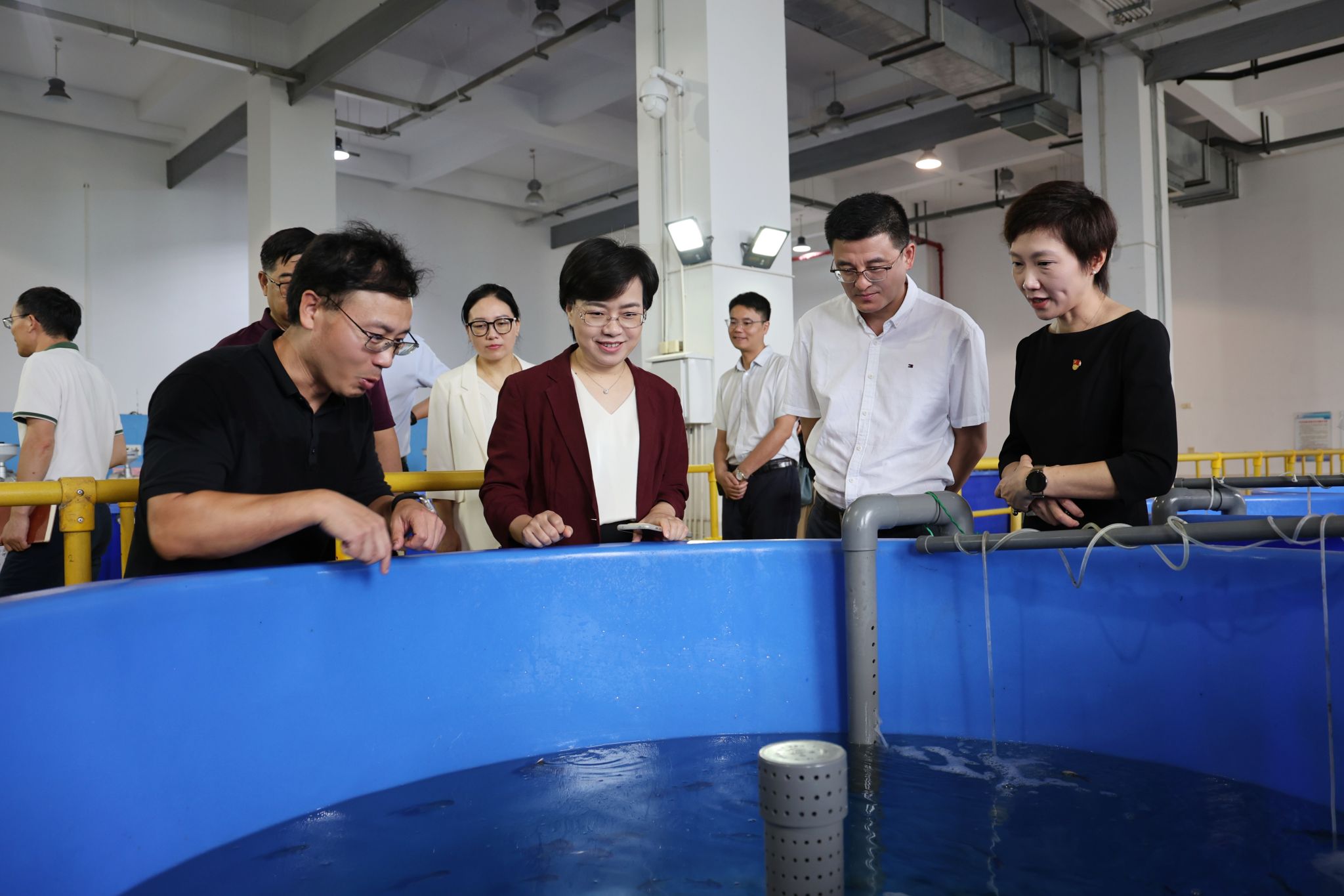 张瑞丽一行首先来到学院中试基地,实地察看了银鲳、青蟹等海鲜养殖情况,并参观了院史馆和海洋生物标本馆,对学院学科发展进行深入了解。在调研座谈会上,张瑞丽认真听取了学院在党建引领、学科建设、地方服务等方面的工作汇报,以及学院班子对于省水产登峰学科建设的发展建议。张瑞丽对禁漫天堂