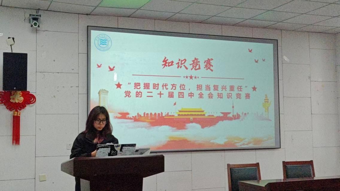 党建中心于海洋东楼107室举办“把握时代方位,担当复兴重任”学习党的二十届四中全会精神知识竞赛。本次活动吸引了学院本科生、硕士、博士党支部的党员代表踊跃参加。