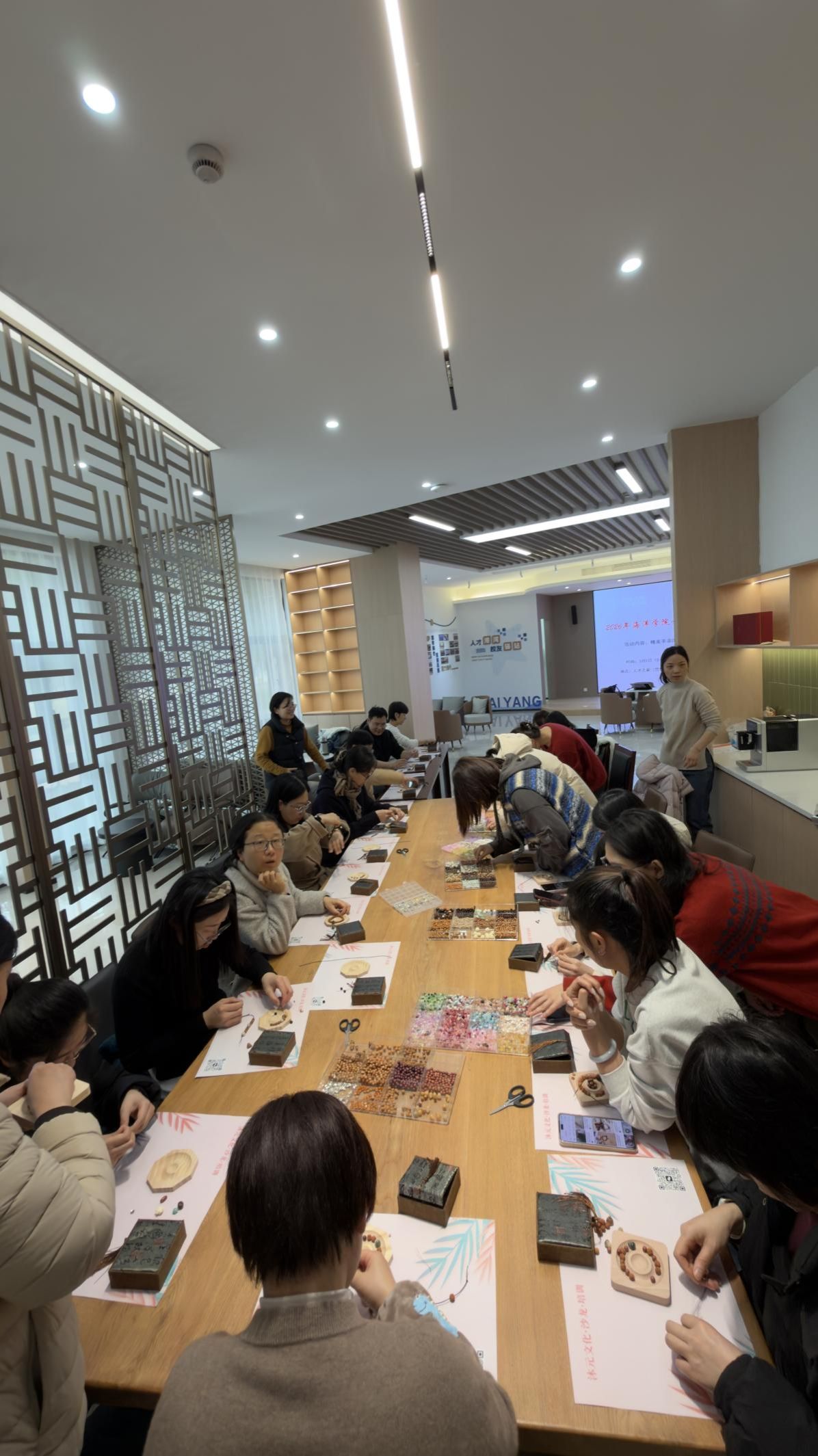 分工会在学院人才之家精心策划了“珠光流转映匠心·指尖雅韵绽芳华”主题手串DIY活动。学院30余名女教工齐聚一堂,以海洋文化为灵感,亲手制作独具匠心的水晶、菩提子等各种材质的手串,在创意手作中感受节日温情与艺术之美。