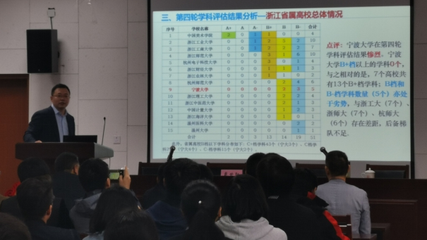 报告会上戴院长介绍了学科评估工作概览,并就浙江省属高校的总体情况针对第四轮学科评估结果进行了分析。在对比分析过程中,戴院长向教师们指出了禁漫天堂