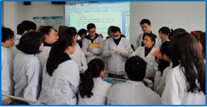 刘博士首先向学生简单讲述了微流控芯片的发展历史,认为等温扩增技术的成熟助推了微流控芯片在核酸即时检验中的快速发展和应用,也详细讲述了微流控芯片在我国各检测领域的应用情况。同时,刘博士以《人宠共患病多联微流控芯片快速检测》的应用实例(模板为目标基因重组质粒,无风险),详细阐述了微流控芯片根据市场需求个性化灵活设计的理念,向同学们演示了微流控芯片的加样操作、仪器使用、结果判读及数据输出,并对学生的现场操作进行了具体指导。2018级生物技术本科生参与了学习与交流。