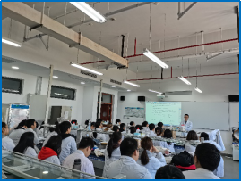 叶老师先后向学生系统性讲授了离心式微流控芯片的设计理念、检测原理、方法优势及市场需求,微流控芯片在农药残留快速检测中的示范与推广,以及纸芯片分析系统的设计初衷、适用领域及优劣势。同时叶老师向同学们先后演示了微流控芯片检测农药残留的加样操作,仪器使用及结果判读,简易纸芯片分析系统的制作,加样操作及结果判读;在理论讲座后,叶老师并对学生的现场操作进行了具体指导。2018级生物技术本科生参与了学习与交流,通过讲座和实操,增进了学生在微流控芯片检测技术的知识,培养了学生在微流控芯片相关技术的应用实践能力。