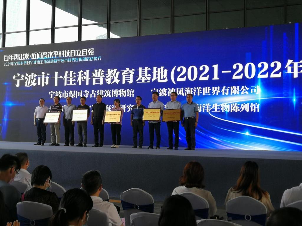 海洋生物陈列馆”作为宁波市十佳科普教育基地在启动仪式上授牌。省市科协、宁波市人大、鄞州区副区长等领导,各县区科协、科普教育基地负责人等100余人参加了仪式。活动期间,全市各级科协系统、科普教育基地、学(协)会将推出200余项科普活动,为广大市民送上科普大餐。