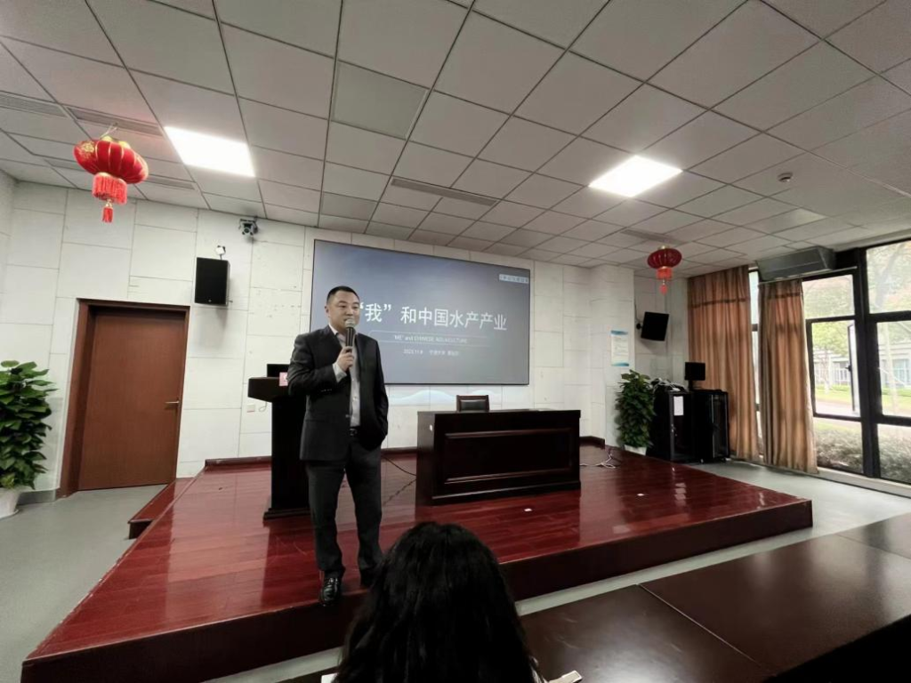 讲座中,裴振东从自己如何与水产行业“结缘”切入,将一个“过来人”的亲身经历、接地气的话语、丰富的实例相结合,向大家讲述了水产行业广阔的前景。他多次提到,水产行业是中国的最后一片处女地,机遇与挑战并存;多次鼓励同学们,认真学习,拥抱时代,专注专业,精耕细作,在专业领域内发挥匠心精神,实现人生价值。