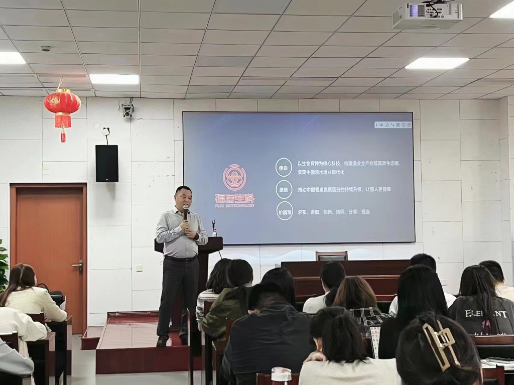 举办“企业家进校园”活动。活动邀请福居生物科技有限公司董事长裴振东向学生讲述《“我”和中国水产行业》的故事。学工办辅导员、学生代表共166人参加了本次活动。活动由辅导员吴丹丹主持。