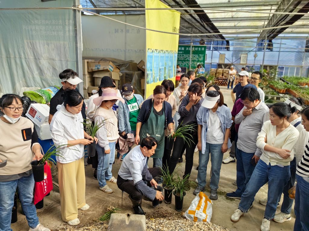 随后,大家参观了基地里各色各品的兰花,在师傅的指导下种兰花,学习种植和养护兰花的方法和注意事项。