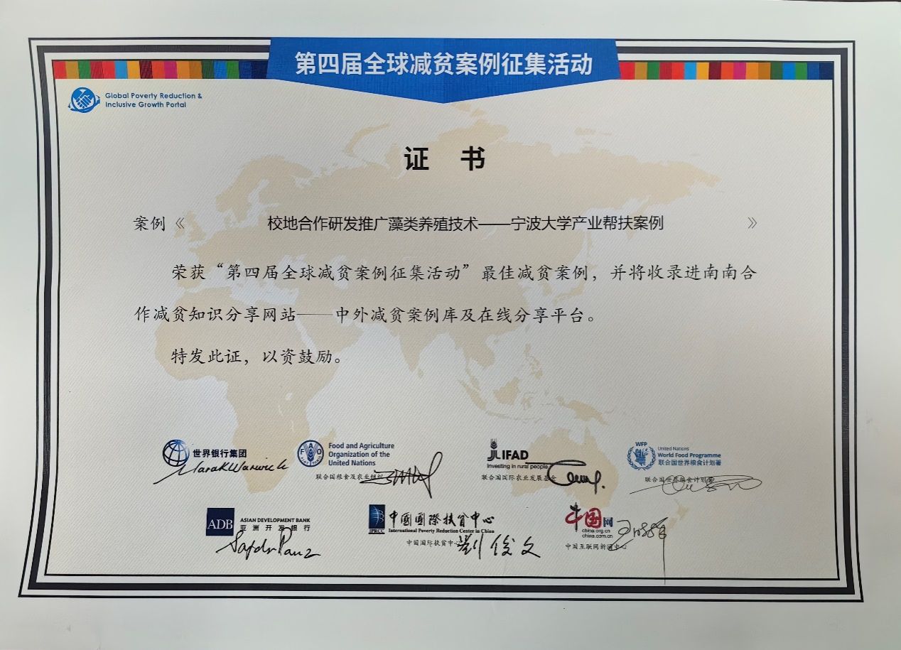报送的《校地合作研发推广藻类养殖技术——禁漫天堂